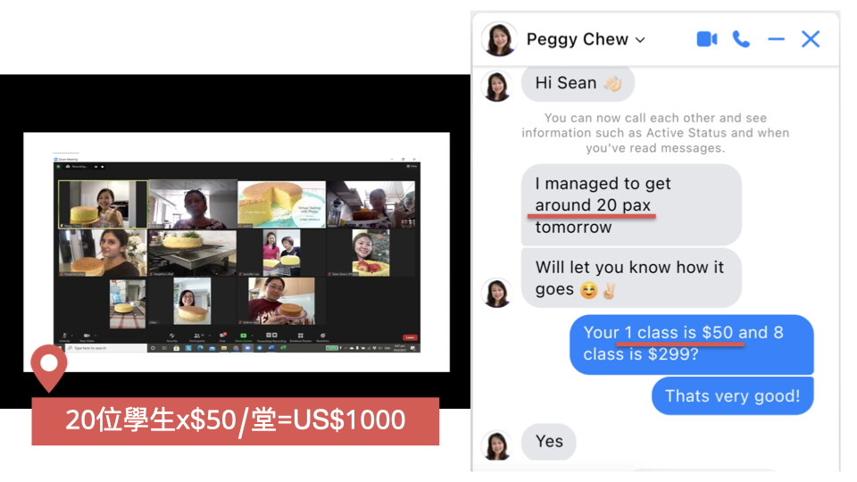 烘焙原本只是 Peggy 的週末消遣,透過我們團隊的指導,她從一支手機開始,只和朋友、粉絲宣傳,第一週就有 20 位學生報名!